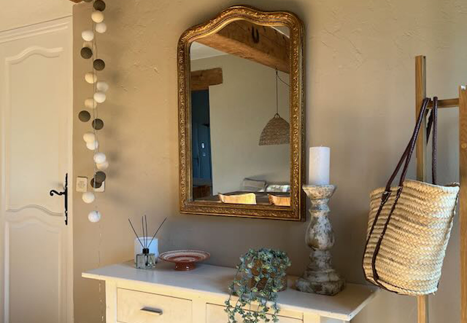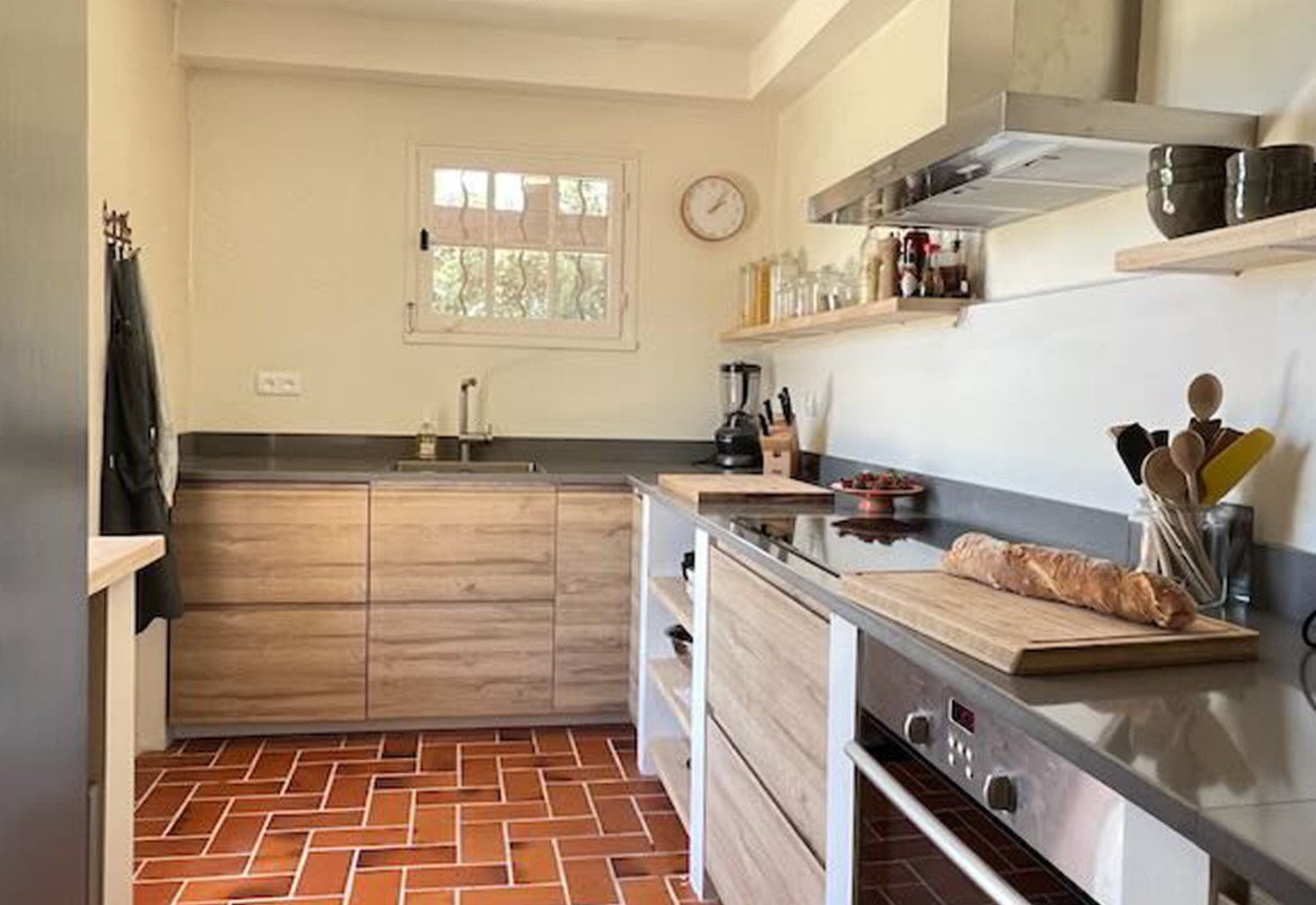 Beim Betreten strahlt die Villa sofort die Atmosphäre der Südfrankreich aus. Authentische Holzbalken, ein terrakottafarbener Boden und Möbel in natürlichen Tönen schaffen ein warmes und harmonisches Ganzes.