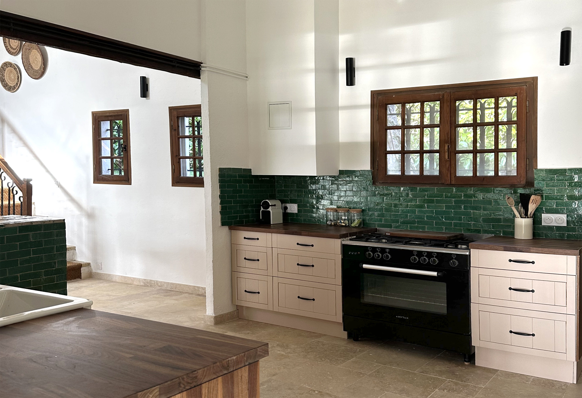 Open kitchen: fully equipped with, among other things, a 5-burner hob with large oven, Nespresso and filter coffee makers, double sink: everything is available so that you can prepare delicious dishes.