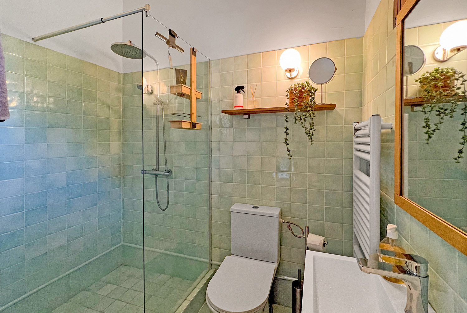 -En-suite bathroom with walk-in shower, washbasin and toilet