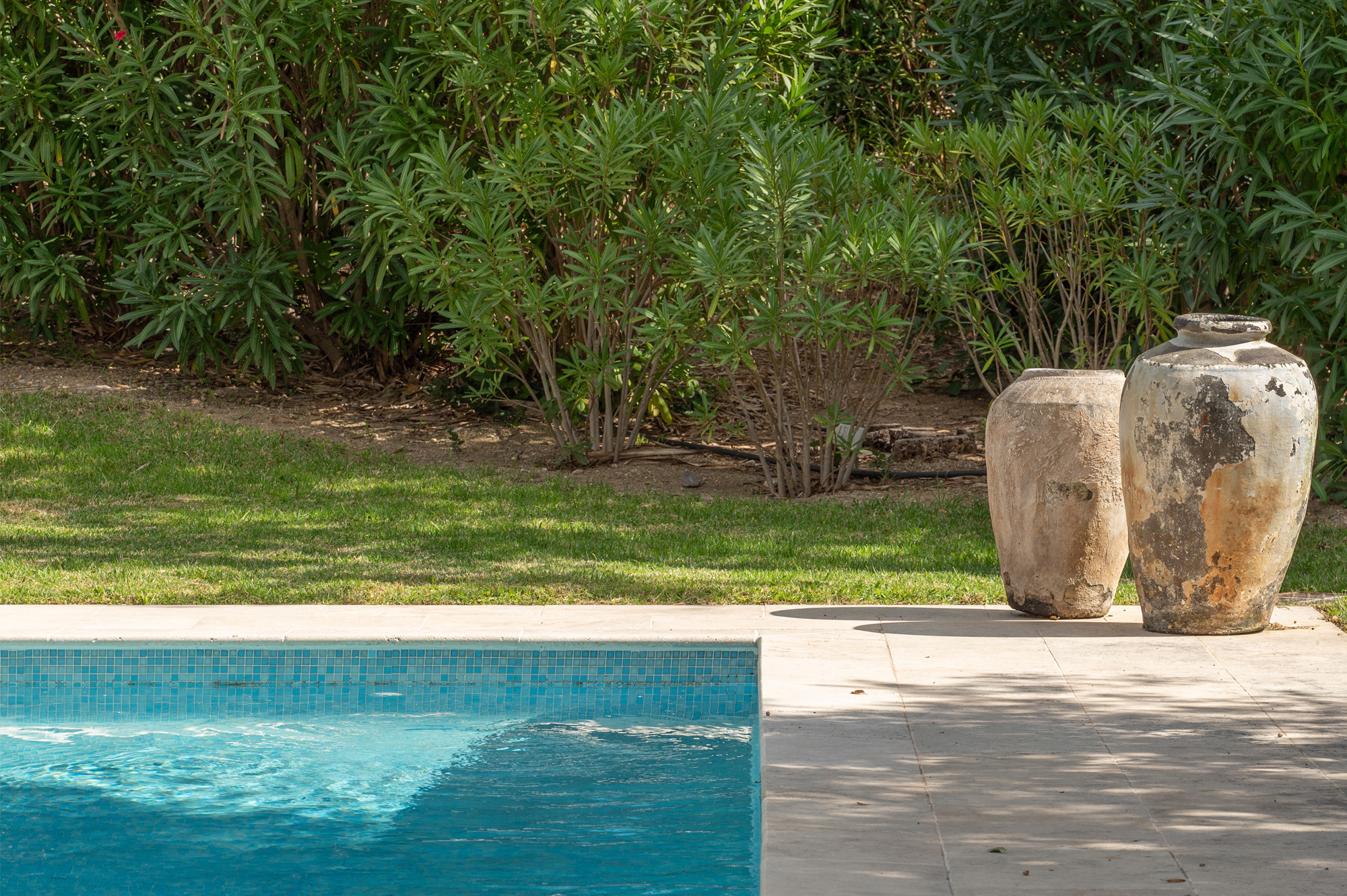• Private swimming pool (9 x 4 m), atmospherically lit, surrounded by palm trees and flowers