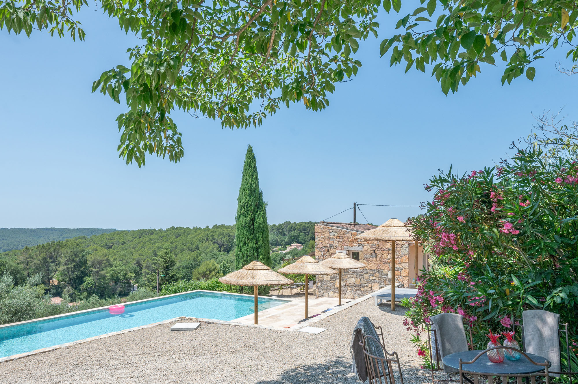 Les deux bastides sont situées sur des terrains privés spacieux et adjacents, entourées de plantations méditerranéennes et offrant une vue sur la campagne provençale et la chaîne des Maures.