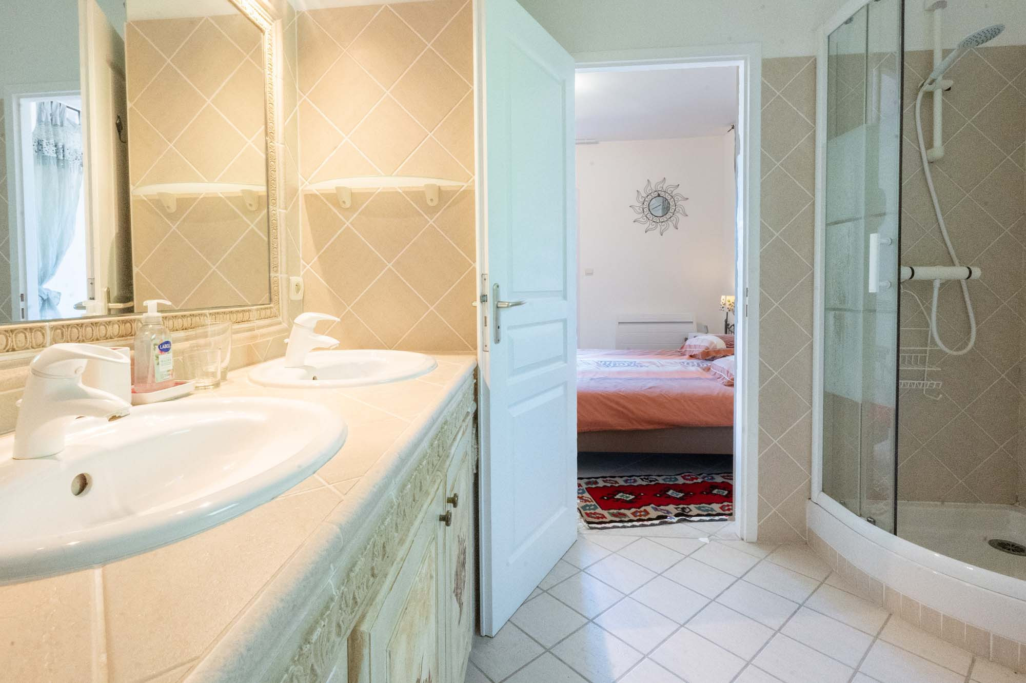 -Salle de bain 1 (attenante) – Double vasque, baignoire et toilettes