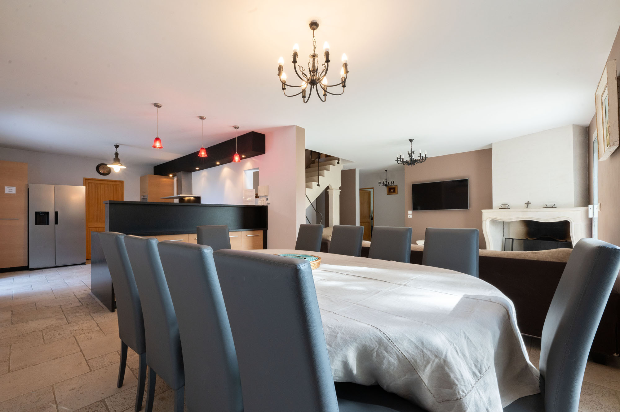 - Grandes portes coulissantes du salon, de la salle à manger et de la cuisine vers le jardin et la terrasse