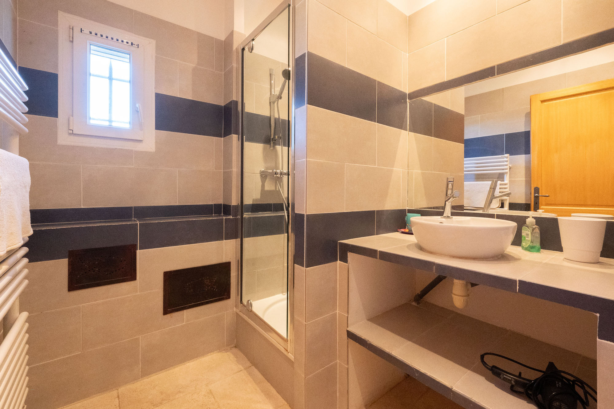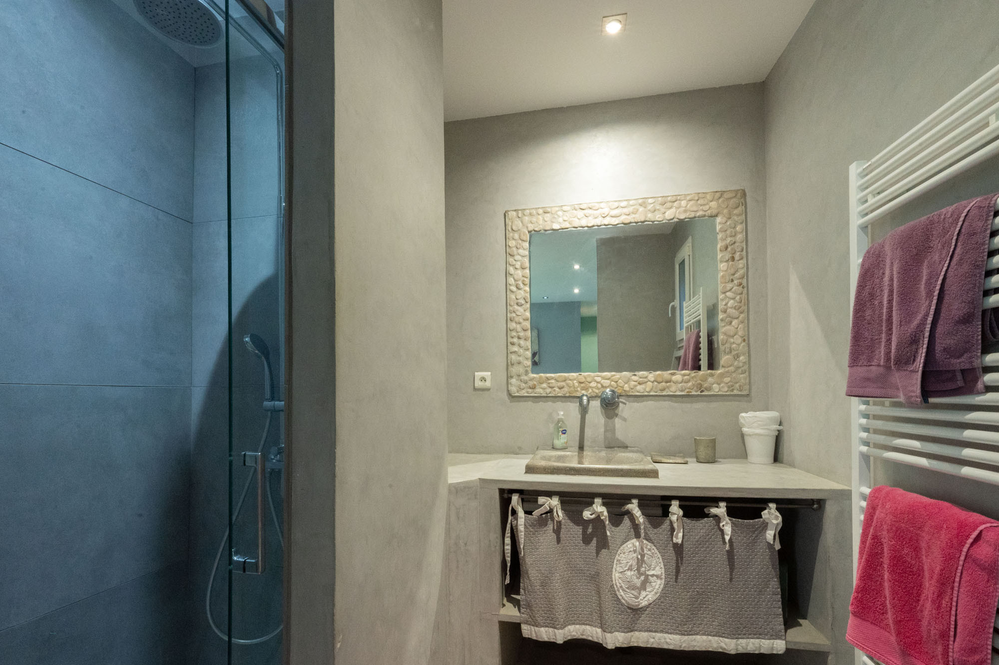 - Chambre 1 (principale) : lit double (160 x 200 cm), climatisation, téléviseur à écran plat, dressing et salle de bain attenante avec douche à l'italienne et lavabo