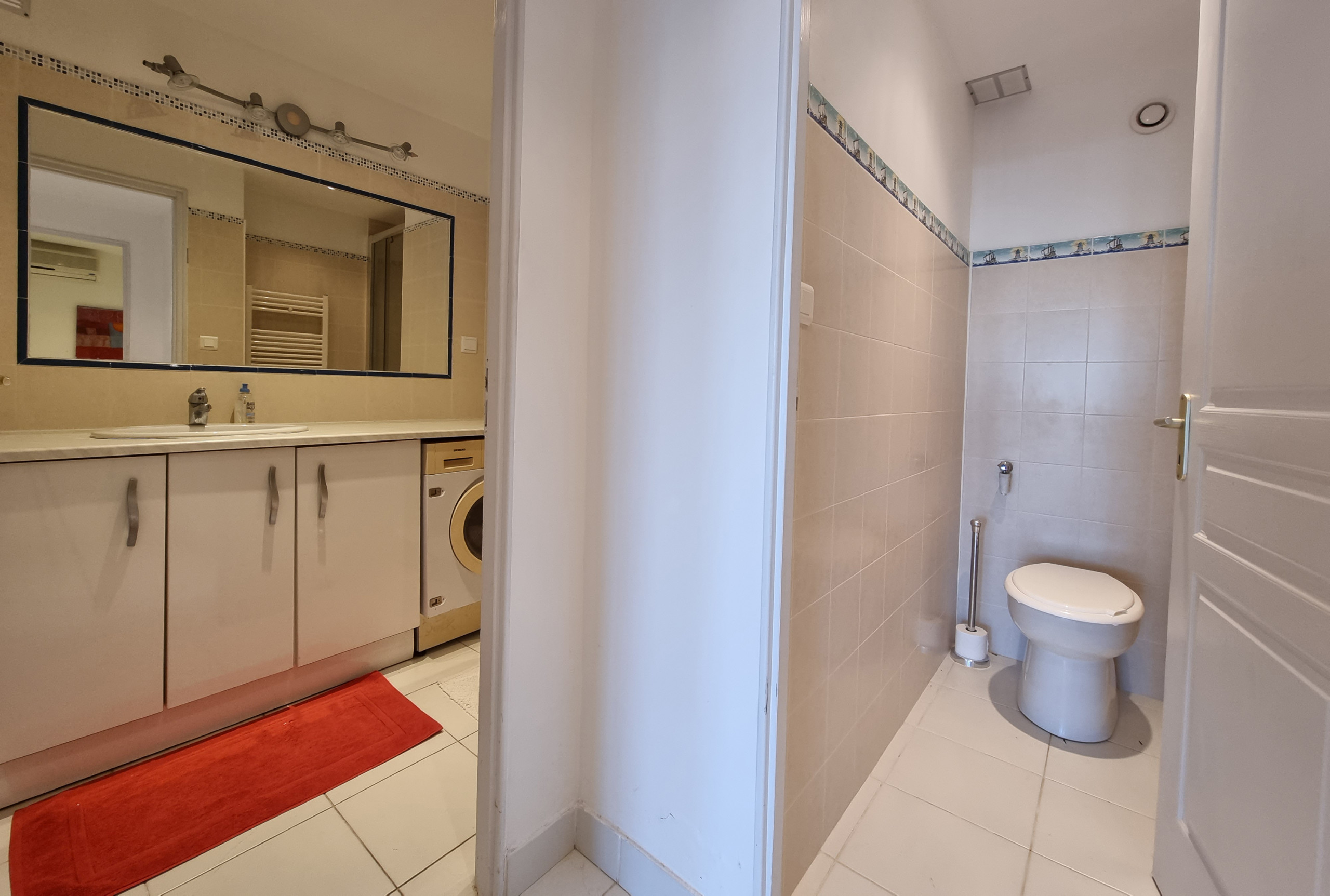 • Salle de bains – Vasque, cabine de douche, machine à laver