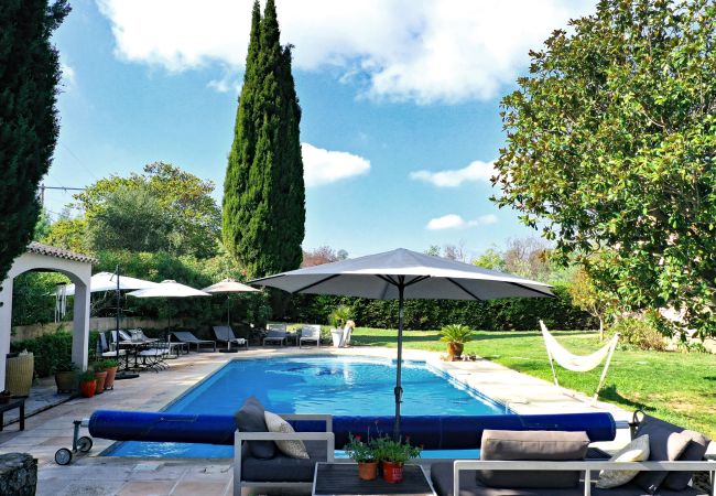 Bienvenue à Villa Les Margoutons : une villa de vacances luxueuse et particulièrement adaptée aux enfants, nichée dans la verdure de l'arrière-pays de la Côte d'Azur. La villa est située à un emplacement magnifique offrant une vue panoramique jusqu'à la baie de Cannes et propose tout ce dont vous avez besoin pour un séjour détente en famille. Le grand jardin d'un hectare, la piscine privée spacieuse, les terrasses agréables et l'intérieur élégant font de cette villa un véritable paradis de vacances.