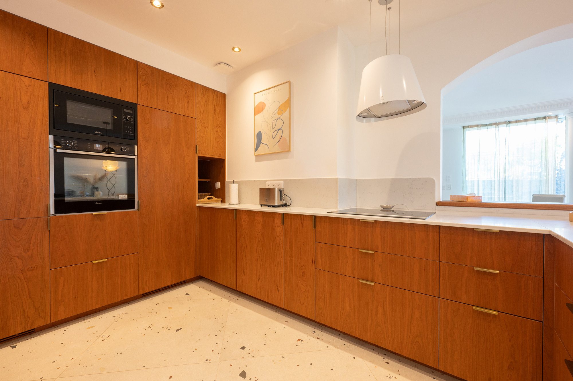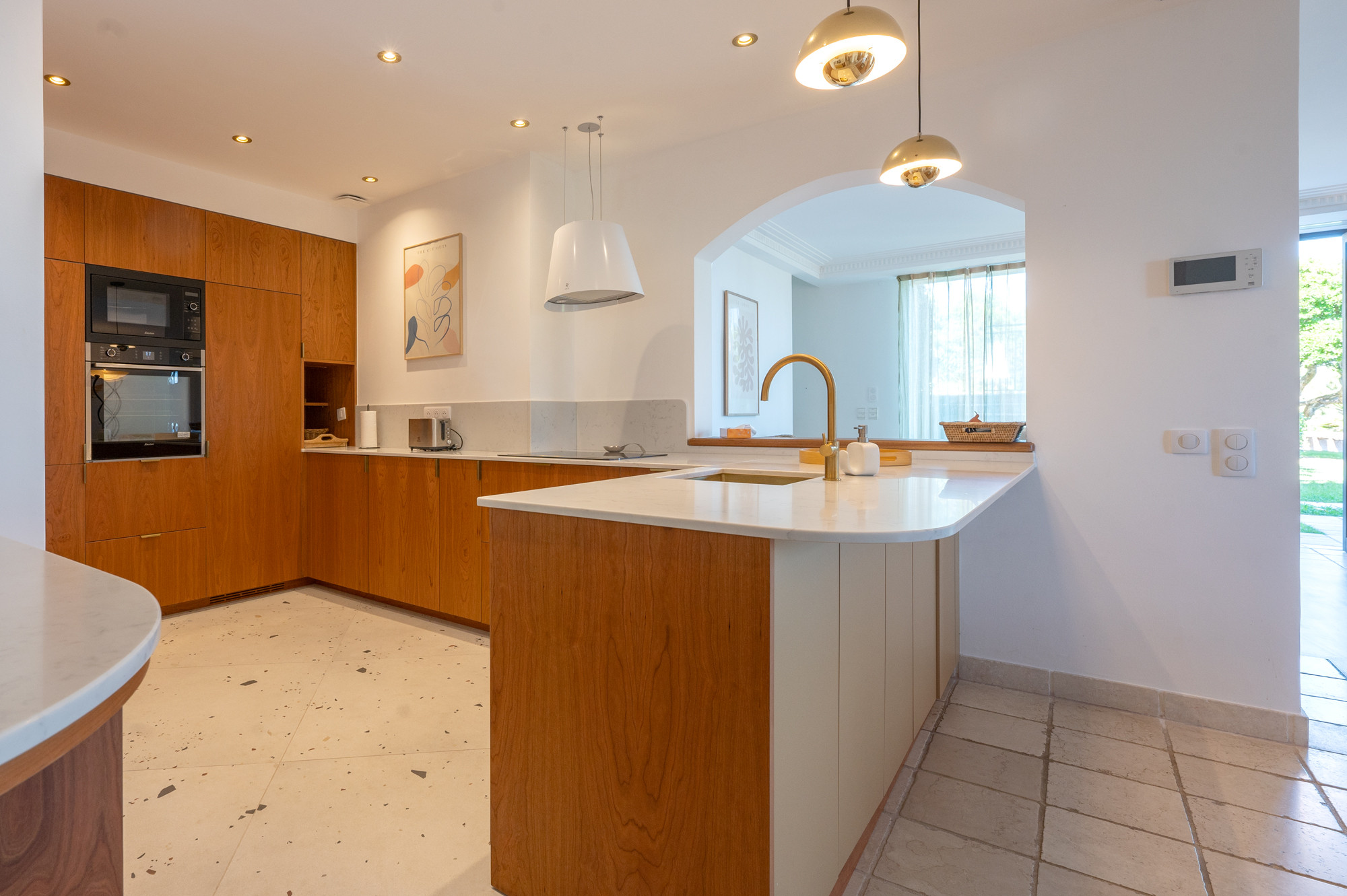 . Cuisine ouverte, entièrement équipée avec bar et réfrigérateur américain avec machine à glaçons