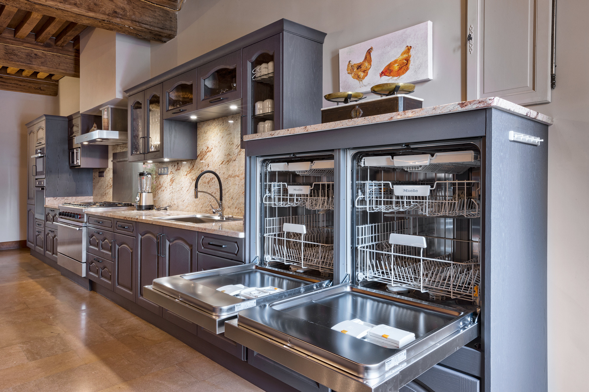 Professioneel uitgeruste leefkeuken met directe toegang tot het terras