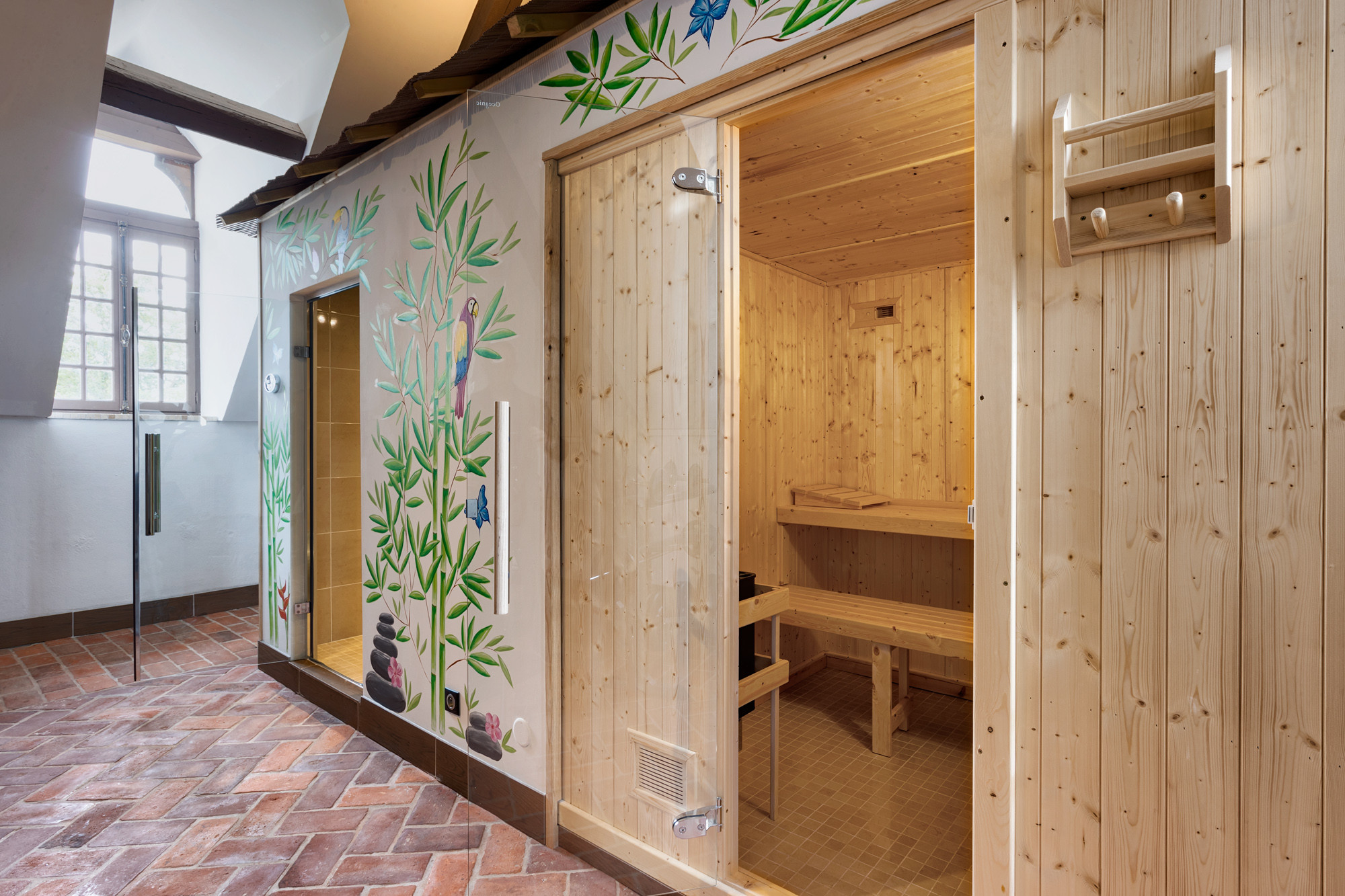 Een eigen wellnessverdieping in het kasteel – zeldzaam voor een historisch domein.