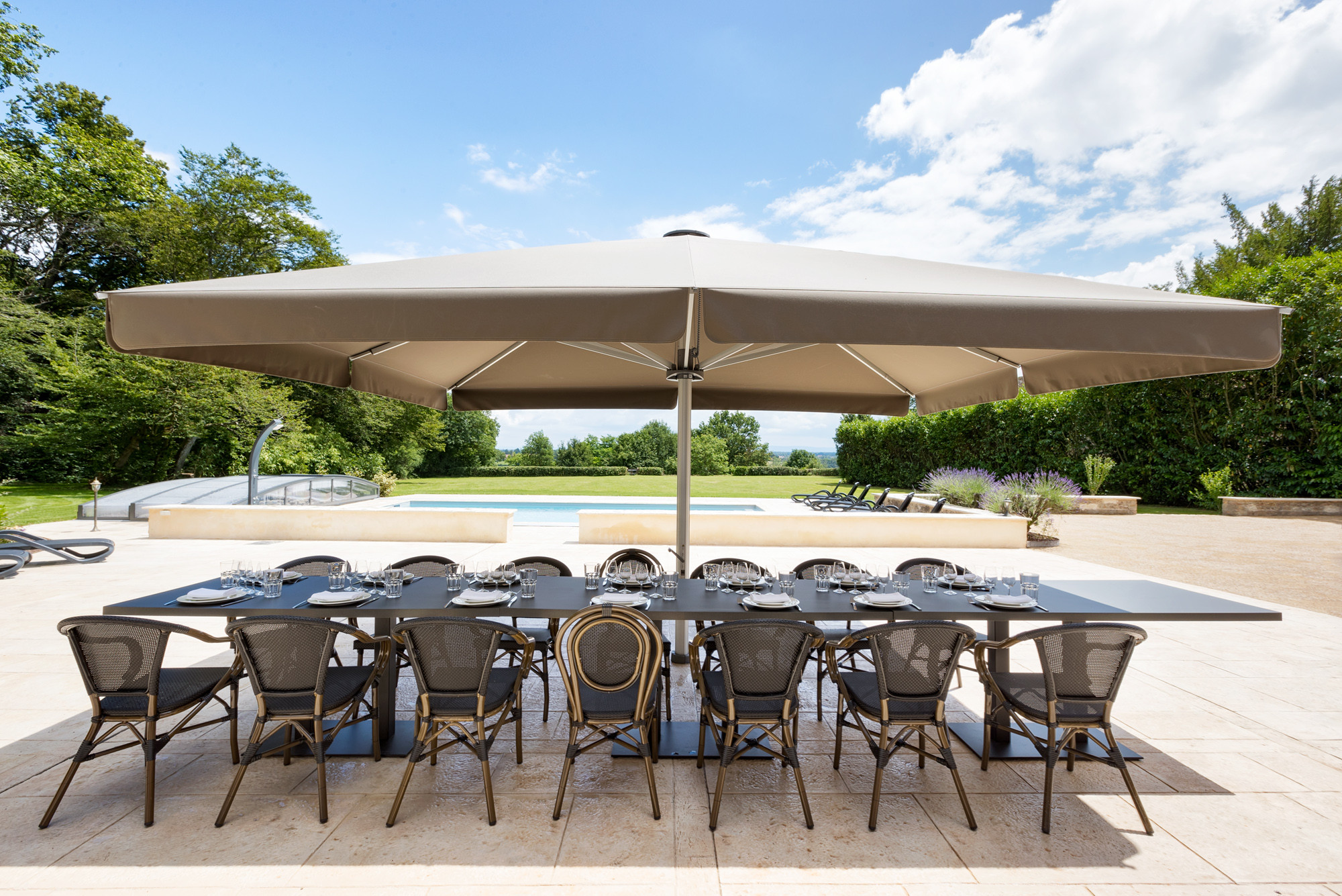 Groot poolterras met eettafel voor 20 personen