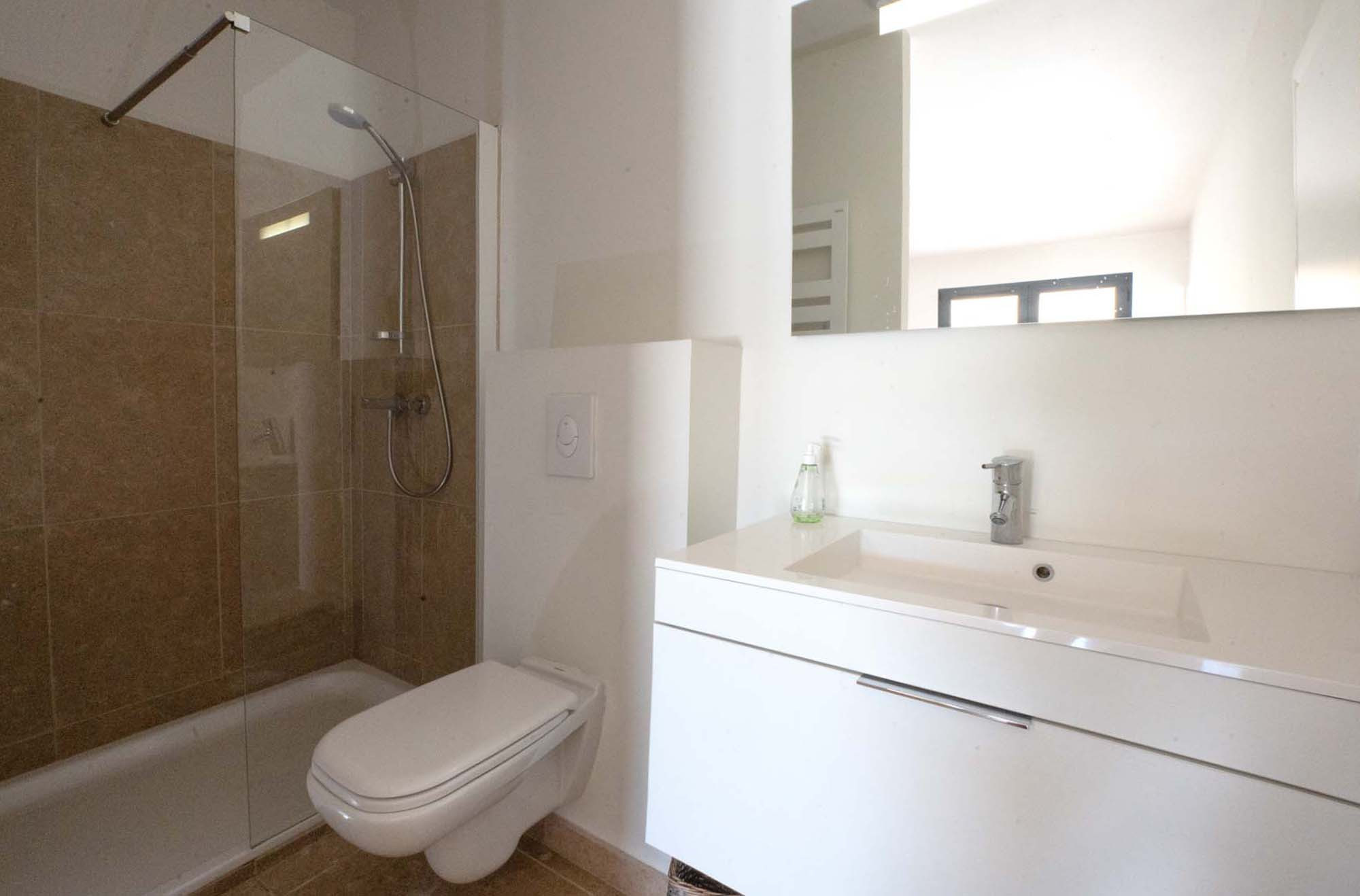 . Badkamer 1-en-suite: inloopdouche, wastafel en toilet