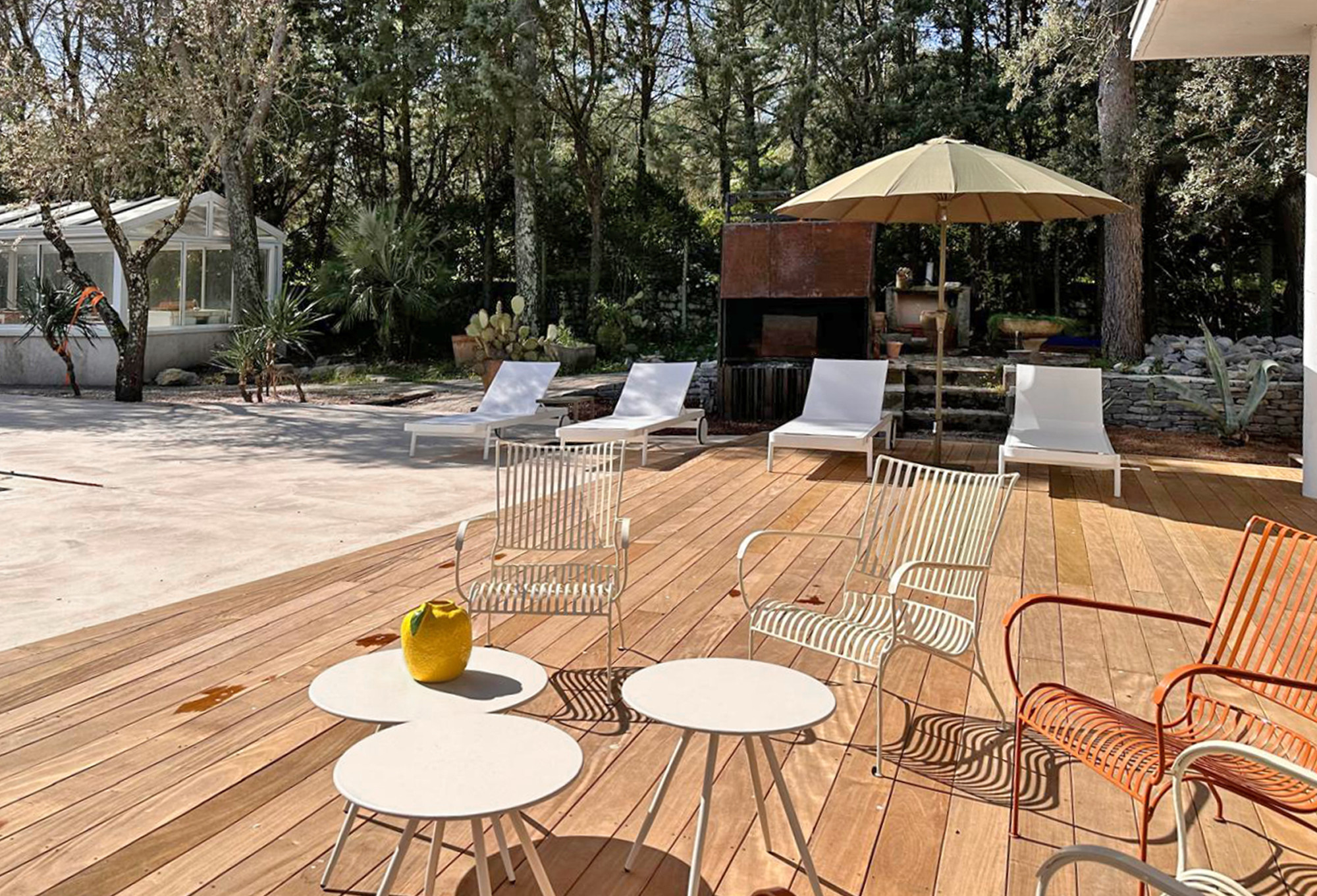 Tweede terras onder de bomen voor natuurlijke schaduw