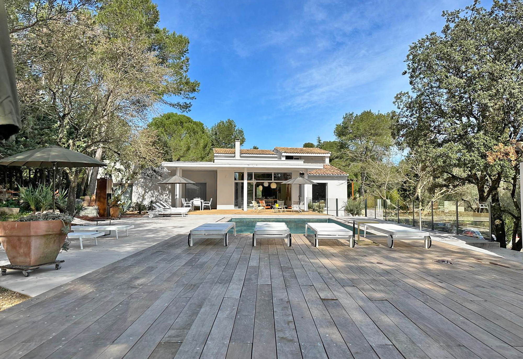 Maak kennis met Villa L’Exception, een uitzonderlijk luxueuze en volledig gerenoveerde villa (2026), gelegen op de heuvels van Nîmes, midden in de rust en natuur van Zuid-Frankrijk. Deze moderne villa combineert indrukwekkende volumes, verfijnde afwerking en een overvloed aan licht met een naadloze overgang tussen binnen en buiten.